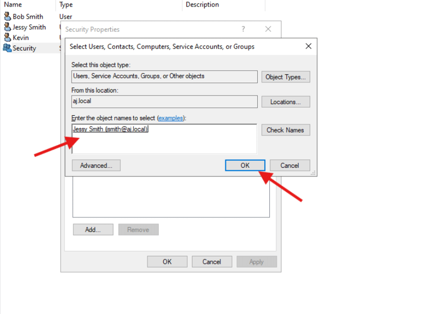 - To add users, right-click the newly created group, select Properties, go to the Members tab, and click Add.