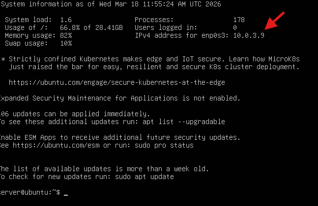 Now open Ubuntu server, As you can see the IP address of our ubuntu server