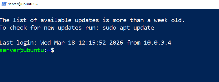 ssh server@10.0.3.9