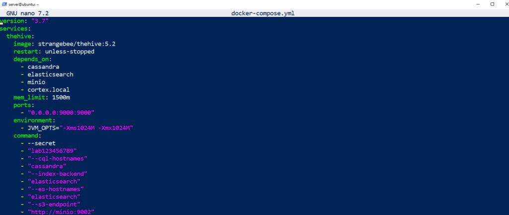 We will use this YAML file to install TheHive, Cortex & MISP make sure you change and include your Network in this file, I’ve mentioned where you should change everything you need in order to run the YAML file later on.