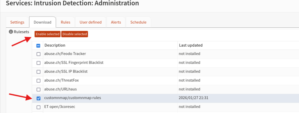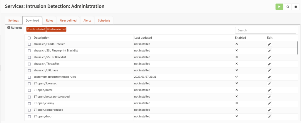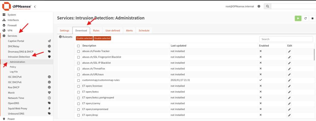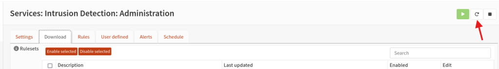 Now open Opnsense Web GUI, go to Services > Intrusion Dection > Administration > Download tab, And restart the service