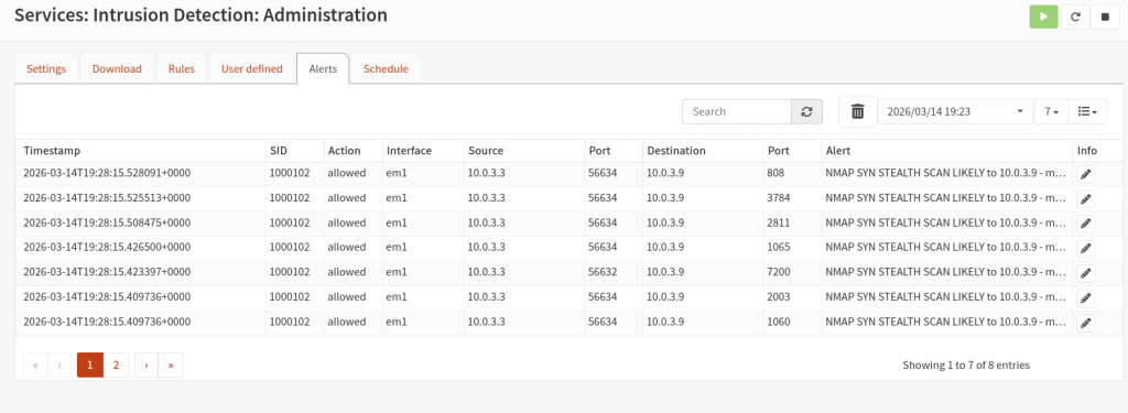 Let go to Opnsense and check for the alerts, we need to restart the service once again.