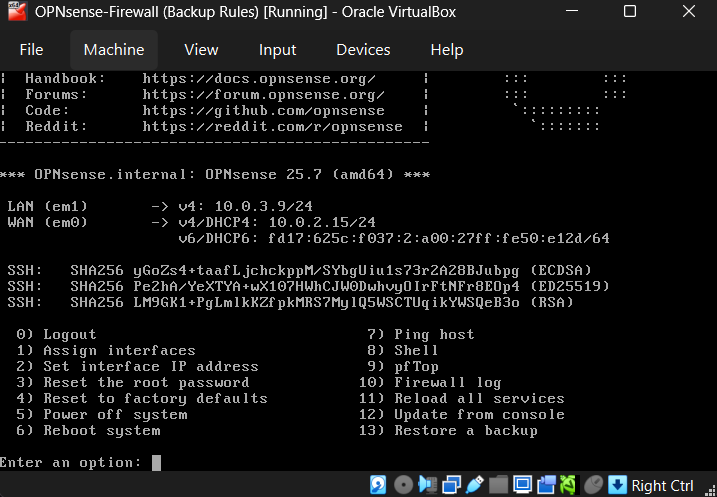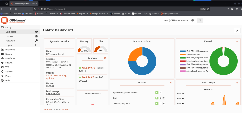 Now start the Opnsense machine and kali to get access to the web GUI.