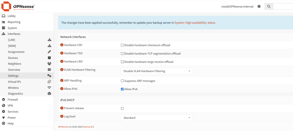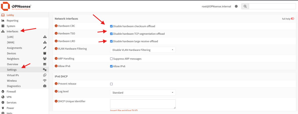 What we need to do is go to the interfaces and setting, We need to disable Hardware CRC,TSO,LRO for our IPS to work correctly and click save.