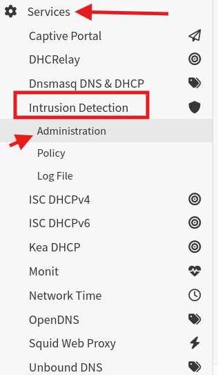 Next we gonna go to services, Intrusion Dection and then to Administration.