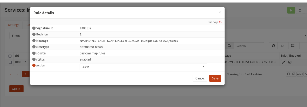 Note! the customnmap.xml will tell opnsense where to download the rule we have created which is the nmap rules and put the IP Address of you kali machine, To tell opnsense where to get the rules.